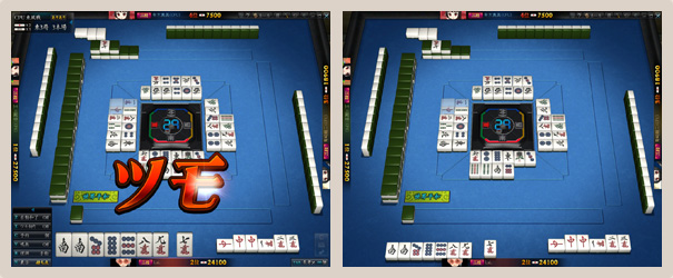 ※自摸の場合、山牌から牌を1枚持ってくる動作の事もツモと言いますし、和了の時に自分で山から持って来て和了する時も自摸(ツモ)と言いますので少し紛らわしいです。